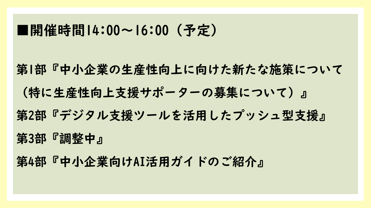 | 2025年12月12日(金)14:00~16:00(予定) 「公的事業紹介セミナー2025」 受付中 |